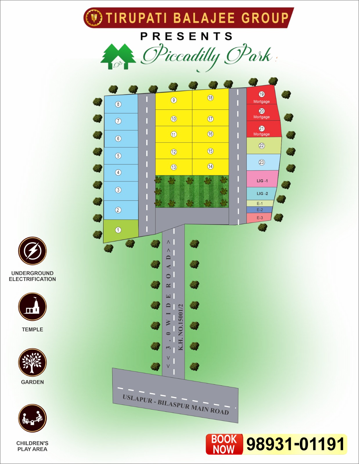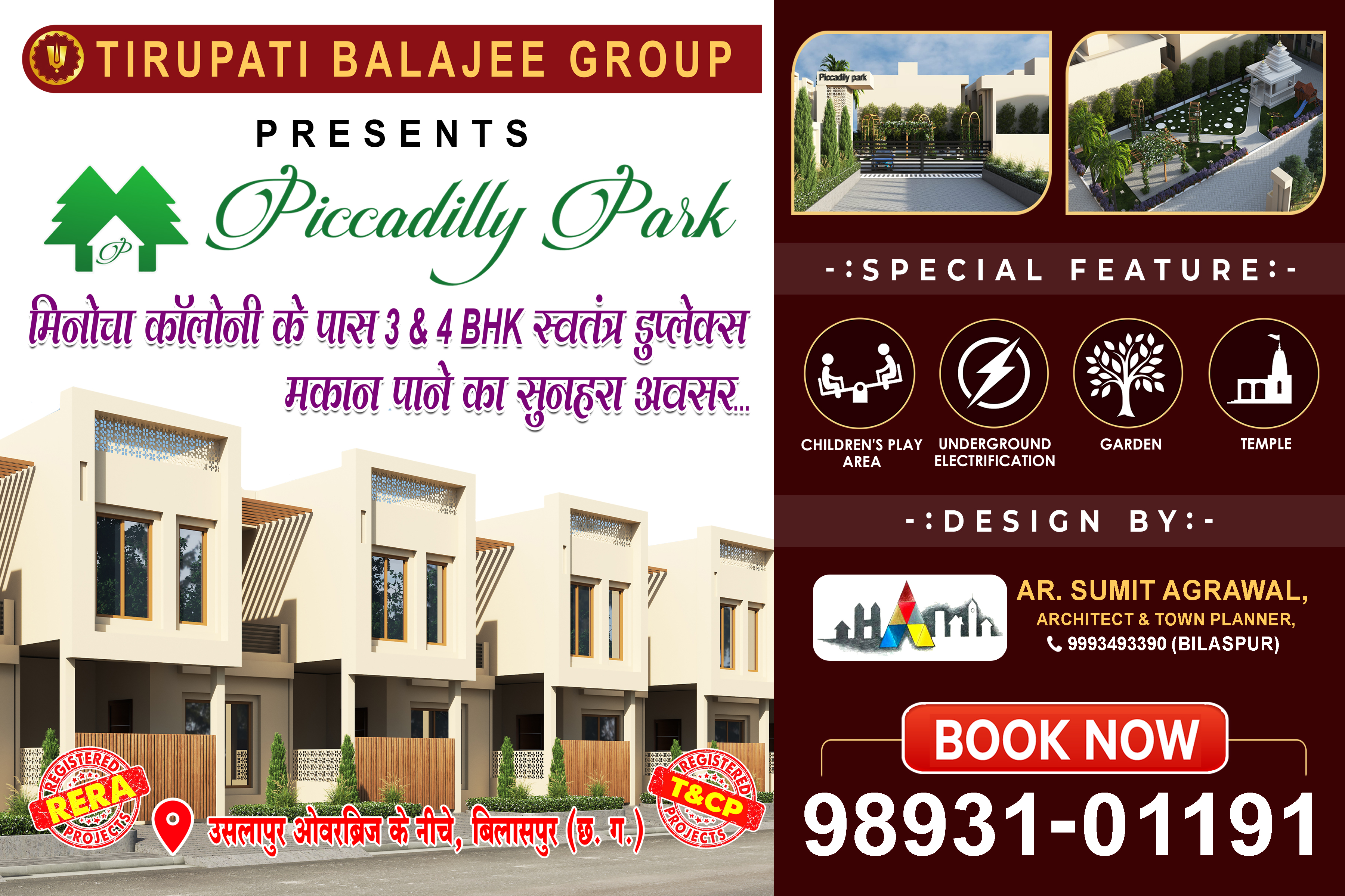 Piccadilly Park, envisioned and developed by the esteemed Tirupati Balajee Group, stands as a testament to luxurious and harmonious living. Nestled amidst serene surroundings, this residential colony embodies elegance and sophistication, offering its residents a haven of comfort and tranquility.